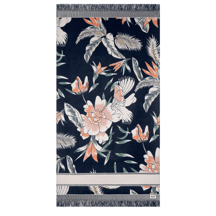 Elevate your beach or pool experience with the Pacific Creations Universal Marisol Beach Towel in Washed Black. This flat woven towel boasts a stylish botanical design and twisted tassels, perfect for the modern woman who values both fashion and function. Experience the ultimate luxury in every use.