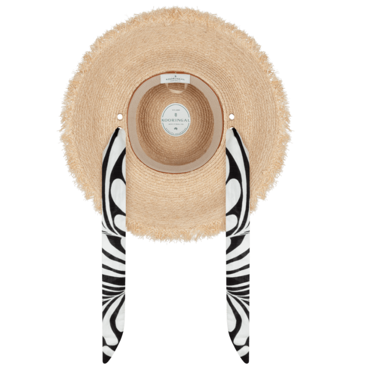 Meticulously handcrafted from 100% raffia straw, this Kooringal wide brim hat combines timeless elegance with practical functionality. The structured fabric crown band and moisture-wicking terry sweatband ensure comfort and stability, whilst comprehensive UPF50+ sun protection safeguards your complexion. The striking printed fabric band elevates your ensemble, complemented by an included plain alternative for versatile styling options. A refined, multifaceted piece for the discerning wearer who refuses to compromise on protection or aesthetics.